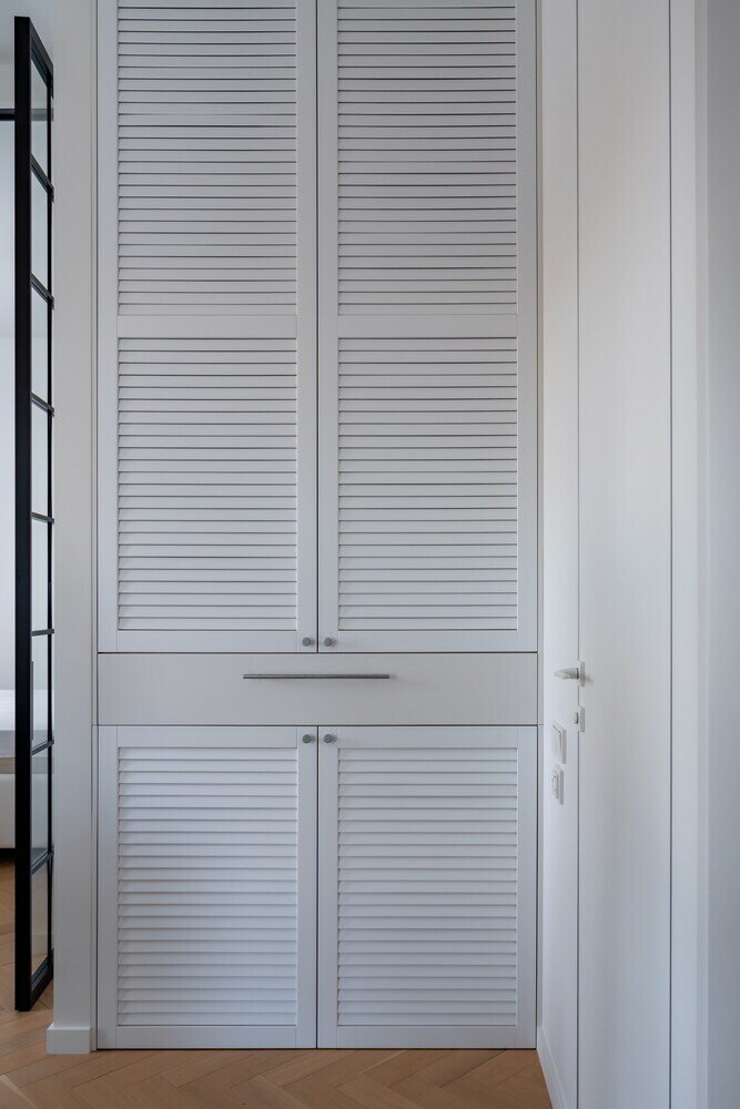 За дверями-жалюзи скрыт полноценный постирочный блок.