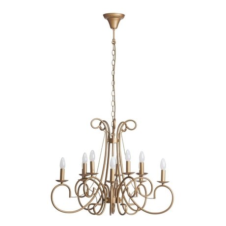 Изысканная подвесная люстра Liege украсит собой как классический, так и современный интерьер благодаря своему дизайнерскому и цветовому решению. Очаровательные кованые элементы, крепление в виде цепи, патроны-подсвечники, золотистое покрытие – все это делает предмет декора аристократически прекрасным, а ваш дом – более уютным, комфортным и светлым.