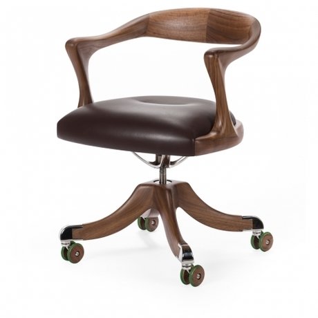 Кресло на колесиках Marlowe – довольно-таки нестандартная и необычная дизайнерская вещь, которая имеет эксклюзивный нестандартный вид, а также конечно же, подойдет только для креативного и нетипичного интерьера. Подобное кресло будет отличным вариантом, как для офиса, так и для дома, но все же наилучшим местом для него станет именно персональный кабинет в отделке из натуральной кожи и натурального дерева. Купить кресло на колесиках Marlowe позволит разнообразить полученный ранее интерьер, вдохнуть в него новую более интересную и стильную жизнь. Материалы, которые применялись для его изготовления говорят сами за себя, а именно натуральное дерево и натуральная кожа в коричневой цветовой гамме.