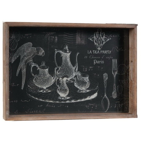 Поднос деревянный с рисунком Сервиз и зеркальным покрытием, цвет черный.