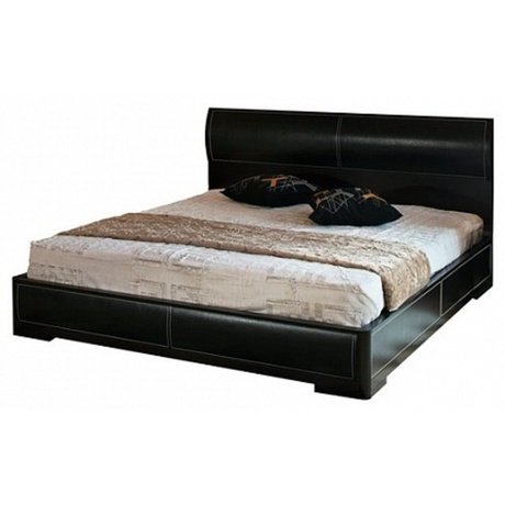 Темная кровать строгой формы. Квадратные ножки, прямоугольное изголовье. Каркас из массива дуба обтянут пресскожей. Поднимающийся механизм, позволяющий разместить под матрасом дополнительную систему хранения. Мягкое изголовье делает кровать удобной, несмотря на ее строгий вид.