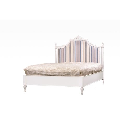 Двуспальная кровать в стиле прованс. Изготовлена из ценной породы древесины Тамаринда. Резное деревянное изголовье предлагается в текстильной обивке. Матрас в комплект не входит.
