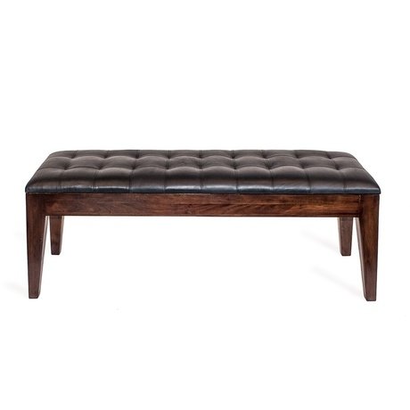 Изящная скамья из массива тика и натуральной кожи. Выполнена в колониальном стиле. Способна украсить собой не только гостиную, но также прихожую или спальню, если разместить её у изножья кровати.