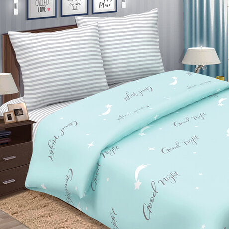 Название: | КПБ 'Традиция' 2,0 спальный с европростыней, поплин, 100% хлопок, пл. 118 гр./кв.м., 'Гуд найт (мята)' |