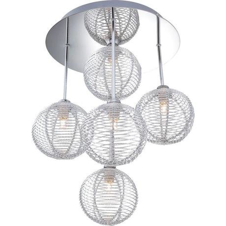 Оригинальная хромированная люстра Glono Keira от австрийской компании Globo в виде гроздьев из пяти спиралевидных сфер, напоминает большие шары с рождественской ели. Люстра подойдет для современных интерьеров в стиле лофт или модернизм. Металл, отделка: хром.