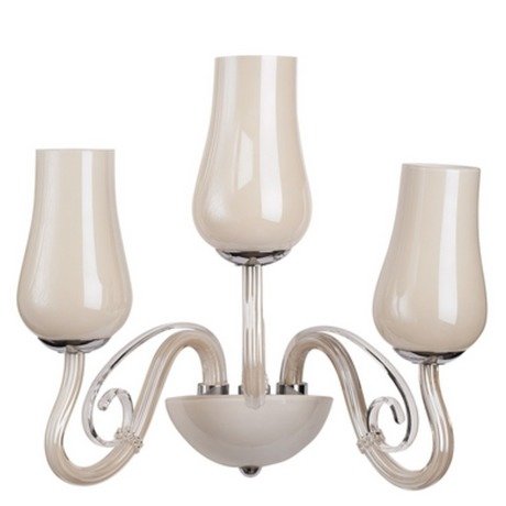 Металлическое основание цвета хрома, декоративные элементы и плафоны из дутого стекла. 3*60W E14. Тип лампы: Накаливания. Рекомендуемая площадь освещения: 9 кв. м