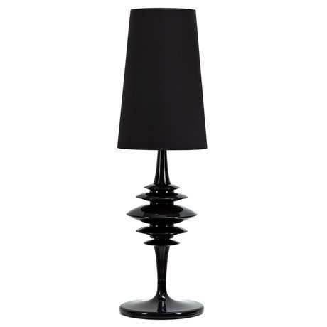 Высокая узкая настольная лампа в готическом стиле - глубокий черный цвет, острые углы, - эта лампа, несомненно, придаст особое настроение комнате. Материал: ПВХ, пластик. Цоколь: E27 Мощность: 60W