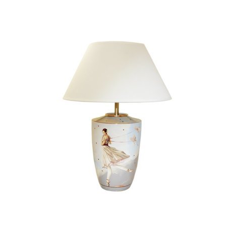 Прекрасная настольная лампа с абажуром, на фарфоровую поверхность основания лампы перенесен необычный мир американского мастера фантастической живописи Майкла Паркеса. Такая чудесная лампа наполнит интерьер вашего дома сказочным волшебством и магией. Оптмальное соотношение цены и качества - отличный повод купить настольную лампу для себя или для оригинального подарка. Размер: 61 м Материал: фарфор Производитель: Goebel, Германия Серия: Parkes