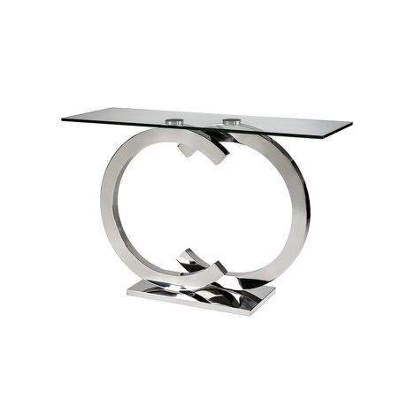 Консольный стол из нержавеющей стали и столешница из безопасного стекла толщиной 12 мм, полированная кромка.