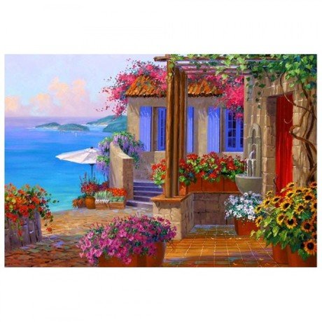 Выход к морю - репродукция одной из уникальных по красоте картин американской художницы Микки Сенкарик. Картины, полной солнца, цветов и счастья. Микки пишет яркие картины маслом, используя присущую только ей систему смешивания тёплых и холодных цветов, которая даёт ей возможность ярко отобразить картину. Она рисует не просто пейзажи и натюрморты, сочетая архитектурные элементы с цветами. Она рисует прекрасный сияющий сказочный мир её души. Поэтому картины Микки Сенкарик так красочны и в них столько жизни!