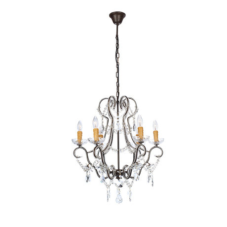 Шикарная люстра в духе французского рококо. Темный металлический каркас окутан россыпью подвесок в форме бус и дополнен золотистыми плафонами в форме свечей. Цоколь: E14 Мощность :MAX 40W Ламп: 6 шт Материал: металл, стекло
