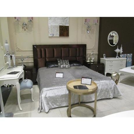 В этот комплект для спальни входят двуспальная кровать с высоким изголовьем, отделанном атласом и прикроватные тумбы с двумя ящиками. Сочетание лакированных поверхностей и атласа с цветом горького шоколада выглядит роскошно и уютно. Размеры: кровать 220*212*140 см, тумбочки 68,5*47,5*60,5 см.