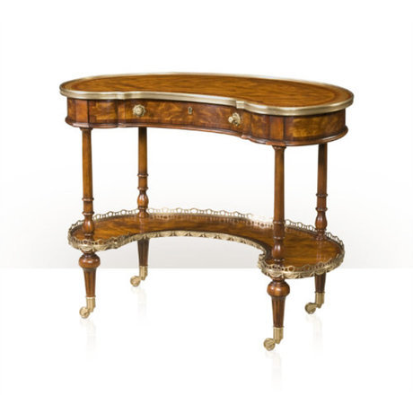 Когда-то в старину подобные предметы называли «столик-бобик». Нет, никакого отношения к собакам этот столик не имеет. Просто его форма очень похожа на фасолину – отсюда название. В 19-м веке «бобики» украшали самые уютные гостиные Москвы, Лондона и Парижа. Наш столик выполнен на высочайшем уровне из красного и розового дерева и является точной копией антикварного.