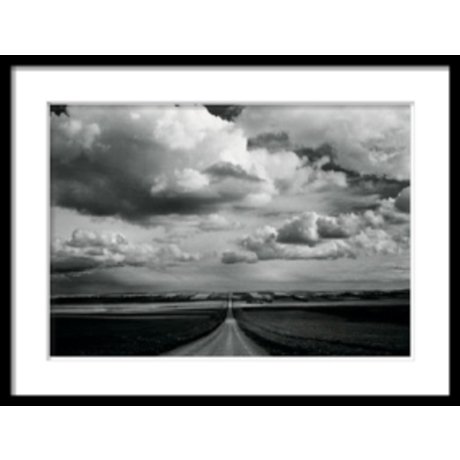 Черно-белая фотография -- дорога уходящая за горизонт, клубящиеся над ней облака. Контрастный снимок, напоминающий о Пути.