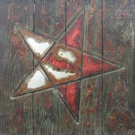 Картина на холсте для интерьеров в стиле лофт или кантри. Изображение звезды с цветовой борьбой красного и белого дополнено металлическими деталями, создающими особую атмосферу таинственности.