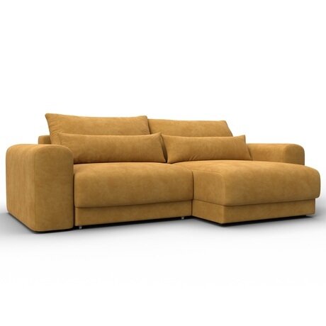 При габаритах: 252x91x163 см подойдет для комнат любых размеров, легко раскладывается, обеспечивая спальное место 163x200 см. Угол дивана универсальный, можно собрать с левым или с правым углом. - Ткань: велюр.