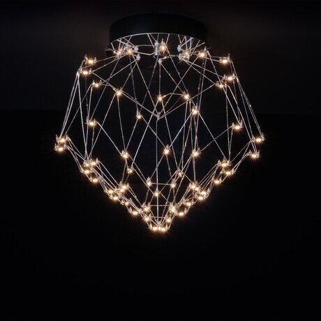 Люстра Diamond D80 хромБриллиант - так переводится название этой модели. Дизайнерская люстра Diamond, действительно, способна стать драгоценным элементом вашего интерьера и подчеркнуть изысканность обстановки. Каркас из тонких прутков нержавеющей стали в форме ограненного камня смотрится благородно. Подсветка из светодиодов имитирует блики на гранях бриллианта. Благодаря элегантному лаконичному дизайну модель уместна как в современном, так и в классическом интерьере. Изделия собираются вручную. Цоколь:LEDЦветовая температура:3000КДиммирование:нетКоличество светодиодов:74Световой поток, lm:4440Мощность, вт:37Степень защиты:IP20Крепление:Потолочная площадка; Цанговый подвесДлина тросов:150 см