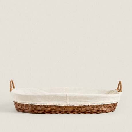 Корзина для пеленания из ротанга с моющимся хлопковым чехлом.