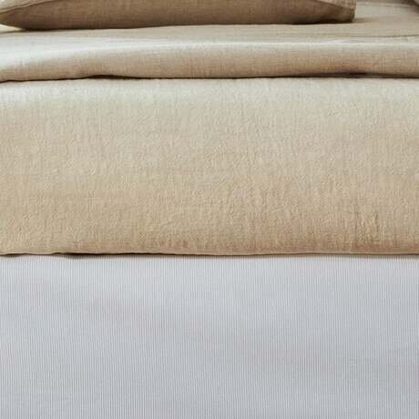 Наш подзор, также известный как покрывало для кровати, изготовлен из грубого хлопка. Он имеет два отверстия по углам и эластичные края, обеспечивающие аккуратное прилегание к матрасу. Длина основания нашего валентного листа составляет 200 см, а ширина варьируется в зависимости от размера кровати. Высота оборки 35 см. Подходит для кроватей с изголовьем, так как закрывает остальные 3 стороны кровати.