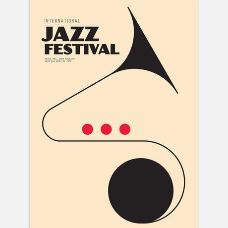 Этот плакат переносит нас в 1973 год и переносит на этот джазовый фестиваль. Конечно, мы можем мечтать вволю, но прежде чем изобрести машину времени, давайте насладимся этим плакатом с абстрактным изображением трубы.