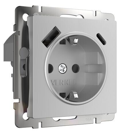 Стоимость доставки товара «W1171706/ Розетка с заземлением, шторками и USB тип A+C (серебряный) W1171706 Встраиваемые механизмы серебряные» можете уточнить здесь
