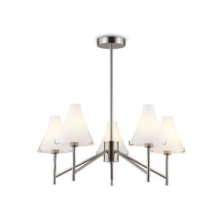 Ищете универсальное решение для основного освещения гостиной? Подвесная люстра Modern LH57123 с пятью плафонами охватывает площадь до 23 м² и станет функциональным центром интерьера в современном стиле. Три главных преимущества: - Сбалансированный дизайн — минималистичная форма с белыми конусными плафонами подходит к любому интерьеру - Оптимальная мощность 200 Вт — создает комфортное освещение для гостиной без перенапряжения глаз - Практичная конструкция — никелевая арматура не окисляется и легко очищается от пыли Люстра подойдет для комнат от 15 м² — благодаря диаметру 650 мм и высоте 590 мм она пропорциональна в помещениях со стандартными потолками (2,5-3 м). Особенно гармонично смотрится в интерьерах в скандинавском, минималистичном или современном стиле. Технические особенности: - Пять плафонов из белого стекла — рассеивают свет мягко и равномерно - Цоколь E14 — совместим с энергосберегающими и светодиодными лампами - Никелевая арматура — не желтеет со временем и сохраняет первоначальный вид - IP20 — подходит для сухих помещений - Простой монтаж — крепится на монтажную пластину к потолку Люстра станет практичным выбором для семей с детьми — конструкция надежна и прослужит не менее 10 лет при правильной эксплуатации. Поставляется с гарантией 24 месяца.Отзывы