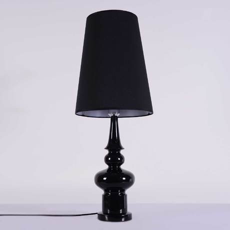 Светильник от IFAB выполнен из смолы черного цвета с глянцевым блеском, плафон - из ткани в тон. Фигурная ножка разбавляет классический силуэт модели.