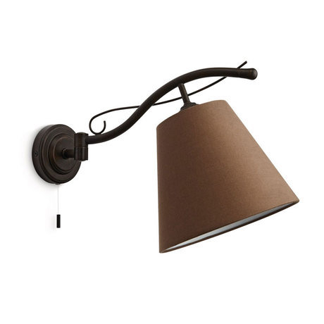 светильник настенный с абажуром из текстиля. Элемент каркаса, на котором размещён абажур, напоминает по форме ветки дерева, а тестиль тёплого коричневого оттенка эффектно гармонирует с цветом металла