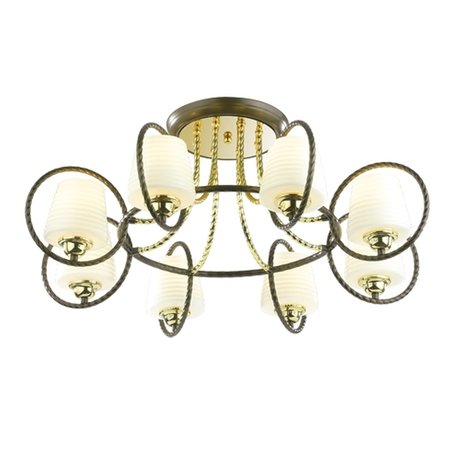 Назначение светильника: для комнаты, Стиль светильника: модерн, Материал светильника: стекло, металл, Ширина: 740, Диаметр: 740, Высота: 305, Количество ламп: 8 шт, Тип лампы: накаливания, Мощность: 40 Вт, Патрон: Е14, Цвет арматуры: античная бронза