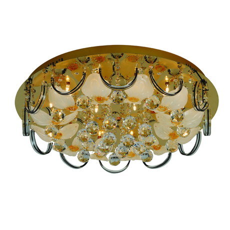 Назначение светильника: для гостиной, Стиль светильника: классика, Тип: потолочная, Материал светильника: металл, стекло, хрусталь, Диаметр: 600 мм, Высота: 220 мм, Количество ламп: 15 шт, Тип лампы: галогенные и светодиодные, Мощность: 20 Вт, Патрон: G4, Пульт ДУ: есть, Цвет арматуры: золото