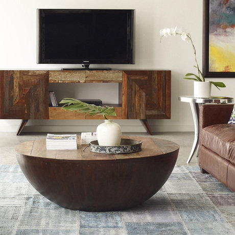 Кофейный стол Ryan. Небольшой полукруглый кофейный столик со столешницей из массива черного ореха и розовой перобы по периметру обит медью. Лаконично, изысканно и очень эффектно. 100 % ресайклинг. Отделка натуральным воском.