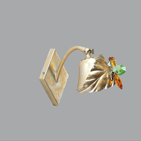 Бра из металла золотого цвета. Декоративный элемент на плафоне в виде листа с добавлением кристаллов Swarovski. Дизайн: Karen Lenz. Количество лампочек: 1; Мощность: 1 x 40 Вт; Тип лампы: Накаливания, E14.