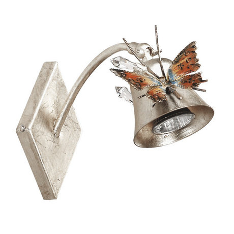Бра из металла с серебряным фольгированием. Декоративный элемент на плафоне в виде бабочки с кристаллами Swarovski. Дизайн: Karen Lenz. Количество лампочек: 1; Мощность: 1 x 35 Вт; Тип лампы: Галогенная, GU10