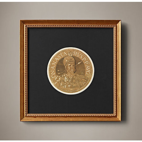 Репродукции из коллекции 16TH C. DUTCH ENGRAVING OF ROMAN EMPEROR сделаны по книге гравюр 1563 года. Ее создал голландский художник Хуберт Гольциус. В коллекции представлена серия портретов римских императоров. Все они выдержаны в тонах сепии и помещены на черную подложку в золоченые деревянные рамы. Бумага защищена Plexiglas®: абсолютно прозрачное оргстекло не искажает изображение и не мутнеет даже при регулярном воздействии солнечного света. Рама подвешивается на стену при помощи D-образного кольца (входит в комплект).