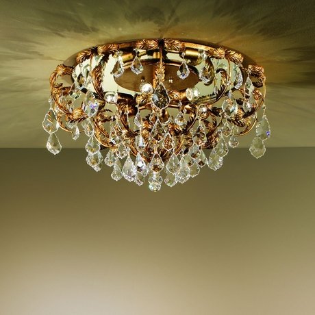 Потолочный светильник из коллекции Specchio на кованной металлической арматуре с зеркалом. Декор: прозрачные хрустальные кулоны. Цвет арматуры: золотой с розовым оттенком. Дизайн: Ufficio Tecnico MM Lampadari. По индивидуальному заказу возможны различные модификации и варианты отделки. Цена по запросу