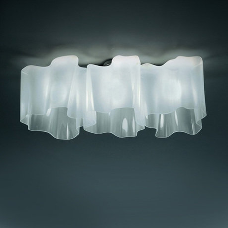 Потолочный светильник Logico soffitto mini 3 in linea из трех элементов. Основа - окрашенный структурный металл, рассеиватель из выдувного стекла с шелковой полировкой. Модульная форма позволяет создавать индивидуальные композиции для спец. проектов. Дизайн Gerhard Reichert , Michele De Lucchi.