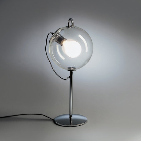 Настольная лампа Miconos tavolo. Выполнена из полированного хромированного металла, плафон из прозрачного выдувного стекла. Комплектуется диммером Дизайн Ernesto Gismondi.