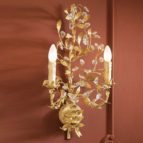 Бра Schuller во флорентийском стиле из металла, покрытие "слоновая кость и золото", украшения из гранёного хрусталя. 2 лампочки E14 LED 4W входят в комплект. (макс. 60w.) Абажуры в комплект не входят. Тип лампы: Накаливания, E14