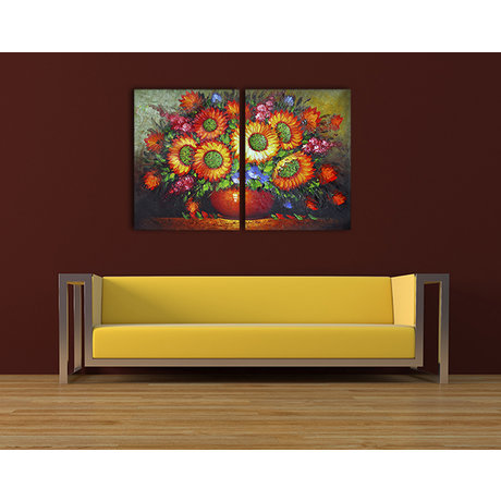 Яркий красивый натюрморт послужил основой для диптиха "Живопись осени". Сочный колорит картины позволит разместить её как в очень темном, так и в светлом интерьере. Композиция порадует любителей живописи импрессионизма.
