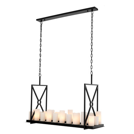 Подвесной светильник Commodore из металла черного цвета. Плафон с оригинальным дизайном в виде пластины, на которой расположены декоративные свечи со светодиодами. В комплекте пульт управления. Количество лампочек: 22. Мощность: 22 x 5 Вт. Тип лампы: LED.