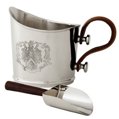 Ведро для льда с лопаткой изготовлены из металла цвета никель. Аксессуар украшает декоративная гравировка герба.