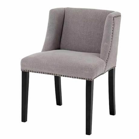 Стул St. James  со спинкой. Материал обивки - ткань серого цвета. Стул декорирован металлическими заклепками цвета латуни. Черные ножки из дерева. Высота сидения - 50 см, глубина — 44 см.