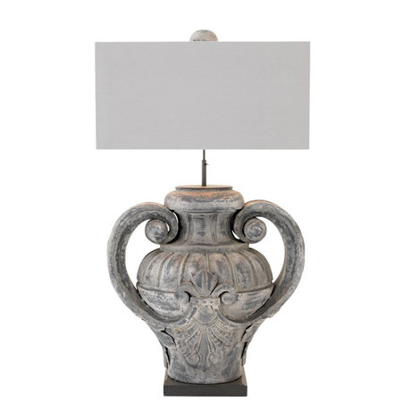 Настольная лампа Table Lamp Barbeau с оригинальным дизайном основания из цинка серого цвета с патиной. Текстильный абажур серого цвета скрывает лампу. Высота абажура регулируется.