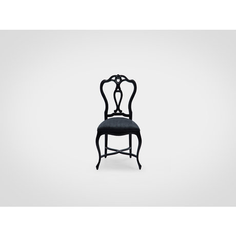 Стул с красивой резной спинкой ручной работы. Цвет черный с легким глянцевым блеском. Обивка под замшу.
