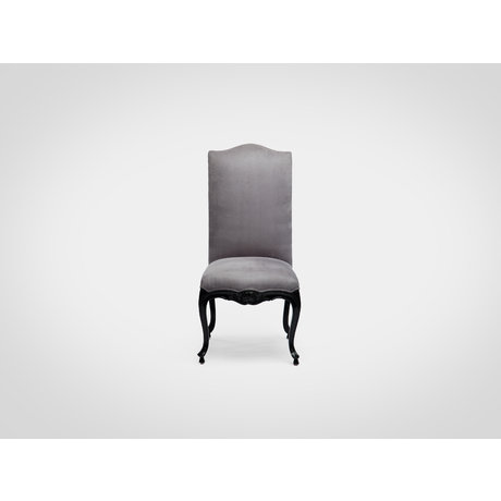 Стул с мягкой спинкой и обивкой под замшу, украшен резьбой.