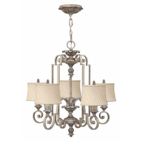 Лампы: 5шт x 60Вт (E14). Плафон: Ткань (fabric) / Белый, прозрачный. Основание: Металл (metal) / Темная слоновая кость (dark ivory). Влагозащита: IP20. Лампа в комплекте: Нет лампы. Питание от сети 220в.