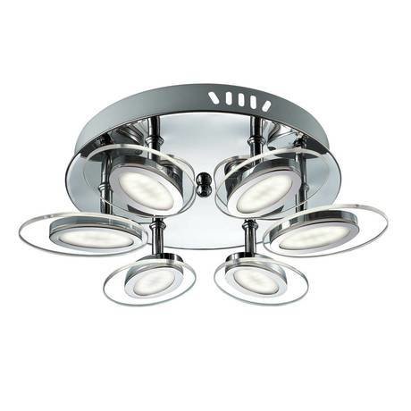 Количество ламп: 6; Мощность лампы, W: 3; Общая мощность, W: 18; Площадь освещения, м2: 9.0; Тип цоколя: LED; Тип лампочки (основной): Светодиодная; Лампы в комплекте: Да; Напряжение, V: 220; Степень защиты, IP: 20; Виды материалов: Стеклянные; Материал арматуры: Металл; Материал плафонов: Стекло; Цвет: Хром; Цвет арматуры: Хром; Цвет плафонов: Прозрачный
