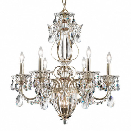 Люстра из коллекции Bagatelle. Плафон из прозрачного хрусталя. Цвет арматуры - серебряный, прозрачные подвески с кристаллами Heritage Handcut. Есть возможность регулировать высоту люстры за счет звеньев цепи. Количество лампочек: 6. Мощность: 6 x 40 Вт. Тип лампы: Накаливания, E27. Вес: 5.9 кг.