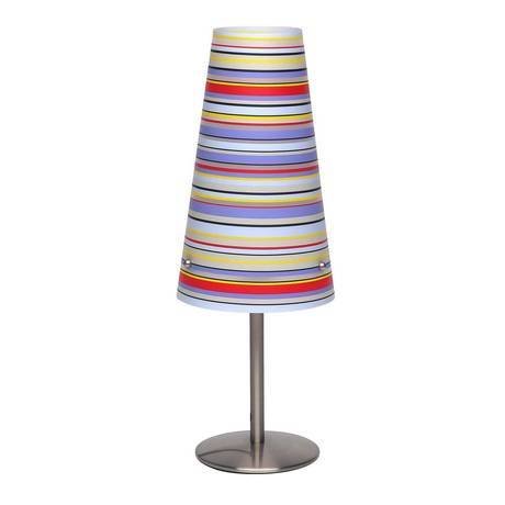 Количество ламп: 1; Мощность лампы, W: 40; Общая мощность, W: 40; Площадь освещения, м2: 2.2; Тип цоколя: E14; Тип лампочки (основной): Накаливания; Напряжение, V: 230; Степень защиты, IP: 20; Виды материалов: Пластиковые; Материал арматуры: Металл; Материал плафонов: Пластик; Цвет: Разноцветный; Цвет арматуры: Хром; Цвет плафонов: Разноцветный; Место установки: На стол.