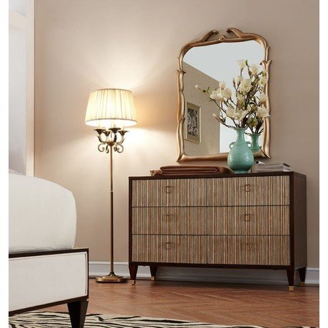 Комод выполнен в стиле неоклассика. Отделка Cherry C, состаренное сусальное серебро.